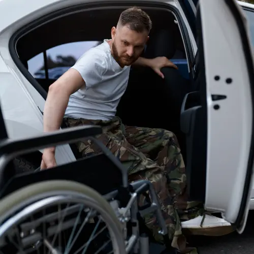 John looks forward to grocery shopping. Accessible parking ensures a safe and convenient shopping experience.